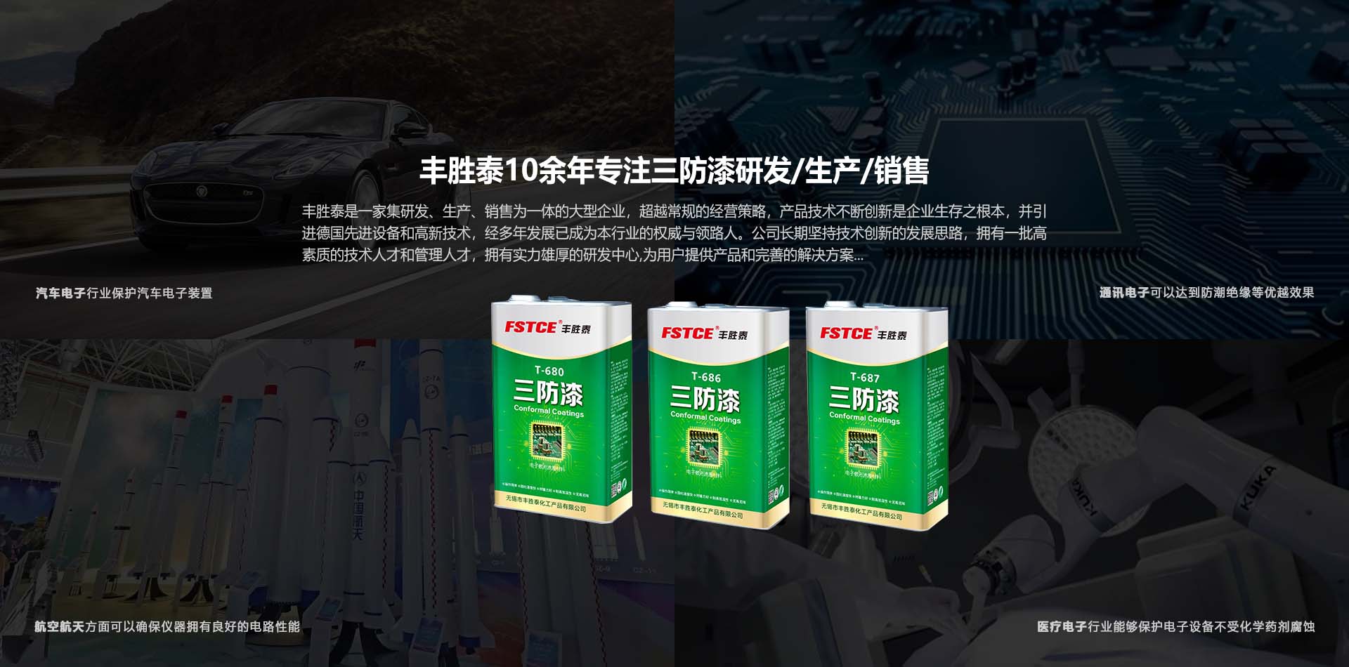 無錫豐勝泰化工有限公司坐落于風(fēng)景秀麗,交通便捷的長三角地區(qū)無錫。公司致力于三防漆、膠粘劑、三防膠產(chǎn)品的研發(fā)、生產(chǎn)、銷售。年生產(chǎn)上萬噸三防漆、三防膠和膠粘劑。自成立以來一直為客戶提供高附價(jià)值的三防漆、膠粘劑解決方案。并在多個(gè)大中城市設(shè)有辦事處。